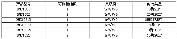●集成度高,片內集成了霍尼威爾公司取得專利的置位/復位技術,因而可以減少溫度漂移、非線性及在高磁場環境中對輸出信號造成的影響。而片內偏置電路則可消除磁場失真的影響。HMC系列磁阻傳感器的主要型號如表1所列,圖1所示是其中6種型號的引腳排列和定義。