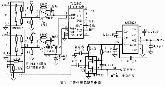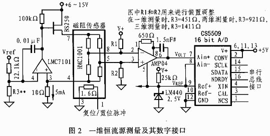 圖2所示是一個一維恒流源的測量和數字接口電路,其二維恒流源的測量及數字接口電路如圖3所示。