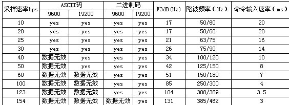 對于不同的輸出采樣速率,參數選擇也有所不同,表3所列為HMR2300的參數選擇表。