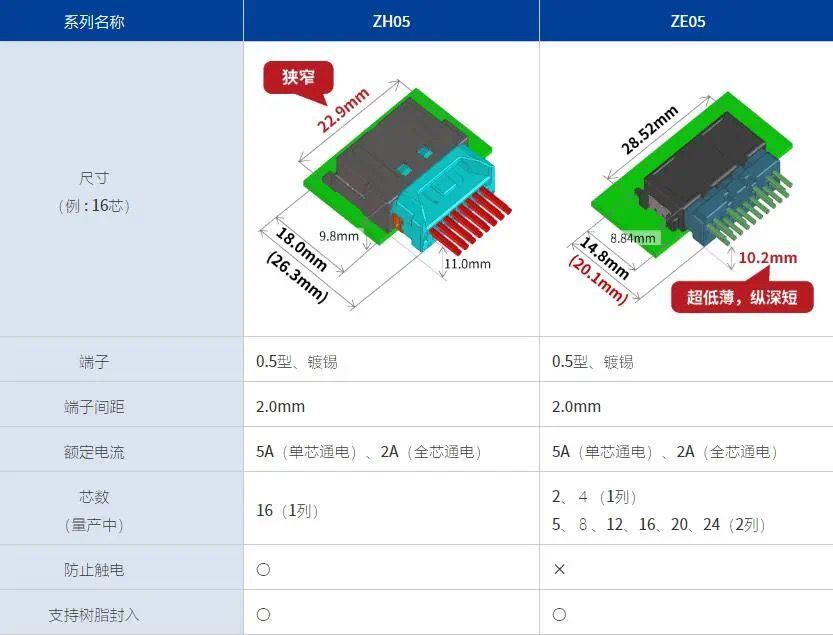 與車載電池內(nèi)部連接用連接器ZE05系列比較