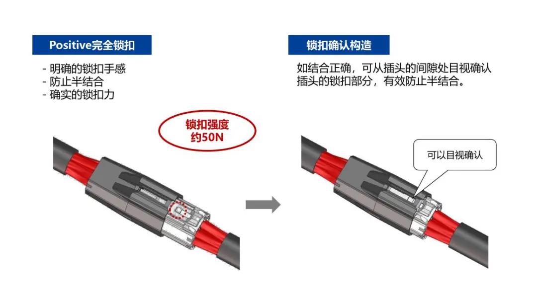 2. 清晰的鎖扣感和目視可確認是否鎖定